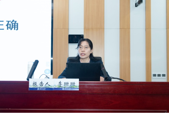 李珊珊以“习近平总书记关于树立和践行正确政绩观的重要论述”为题,从树立和践行正确政绩观的“重要性”“思想内涵”“实践要求”等3个方面,完整准确全面地解读了习近平总书记关于树立和践行正确政绩观的重要论述的核心要义和精髓实质。报告政治站位高、主题鲜明、内涵丰富,讲解深入浅出,既有理论高度、又有思想深度,既有历史纵深、也有实践思考,具有很强的政治性、理论性、指导性。