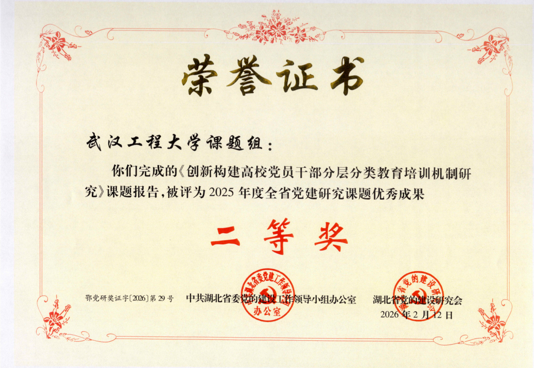 本网讯(通讯员 周雯琪 谭明武)近日,湖北省委党建办和湖北省党的建设研究会公布了2025年度全省党建研究课题优秀成果奖,我校《创新构建高校党员干部分层分类教育培训机制研究》课题报告荣获全省二等奖。
